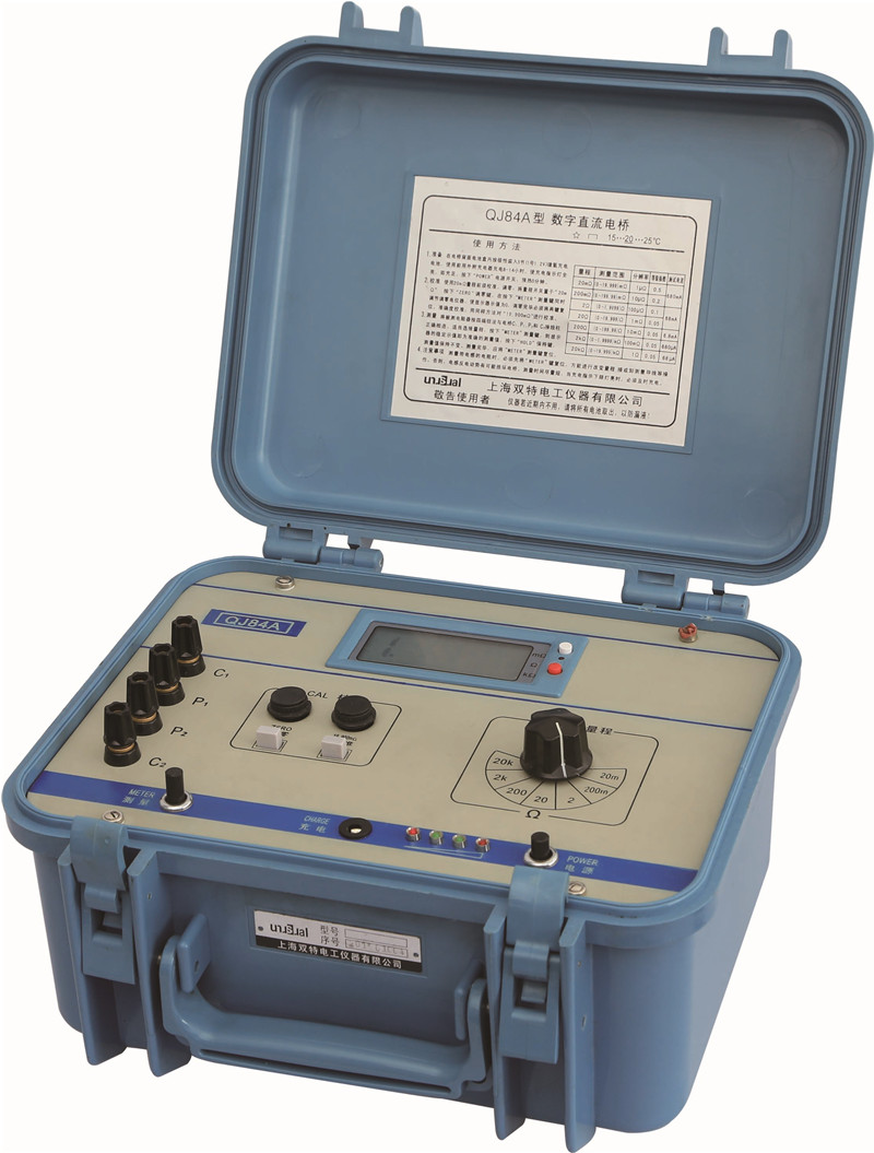 QJ84A型数字电桥 是凯尔文电桥的更新换代产品, 适合于工矿企业、实验室和车间现场, 对直流低值电阻作精密测量。采用国际流行的新颖PⅢ型外壳,以高强度工程塑料为原料,具有美观大方、耐腐蚀、坚固实用、抗挤压性能好等特点,尤其适合车间现场和野外使用。