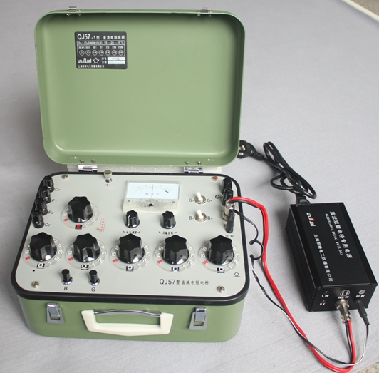 QJ57P-1仪器内附晶体管放大检流计和能内附工作电源。适合于工矿企业、实验室或车间现场以及野外工作场所作直流电阻测量之用;用来测量其范围内的直流电阻、金属导体的电阻率、导线电阻、直流分流器电阻、开关、电器的接触电阻及各类电机、变压器的绕线电阻和稳升试验等。